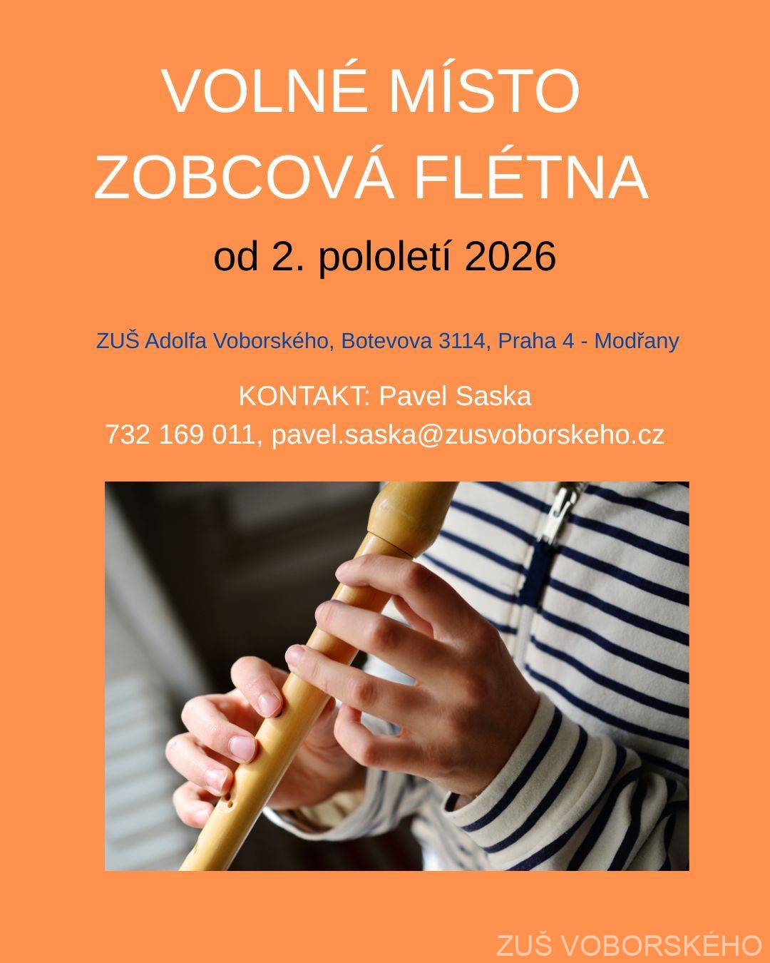 Oznamujeme, že máme volné místo pro studium zobcové flétny od 2. pololetí, hlaste se vedoucímu dechového oddělení Pavlu Saskovi,