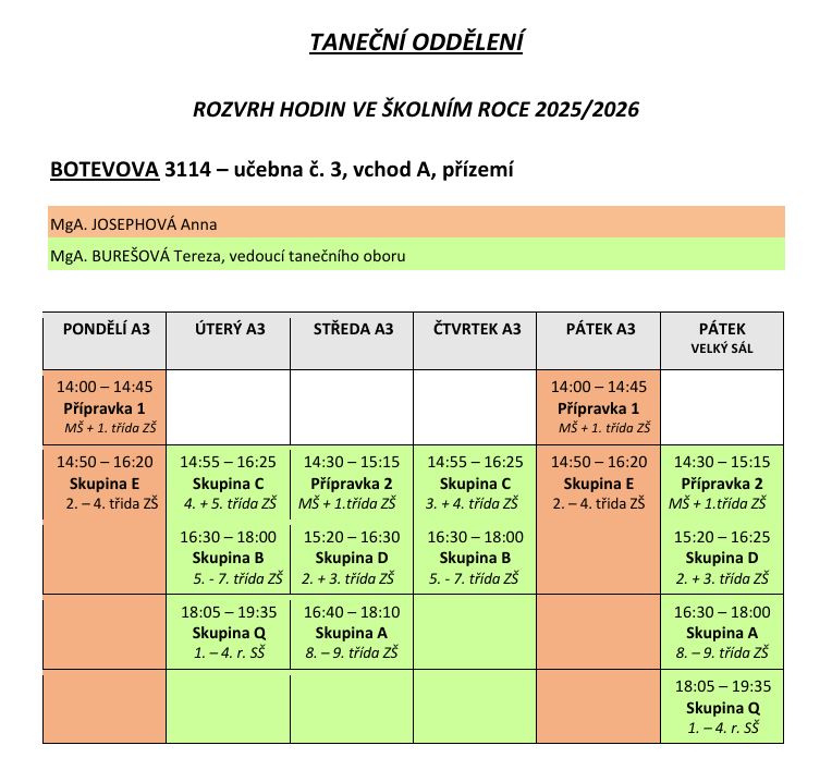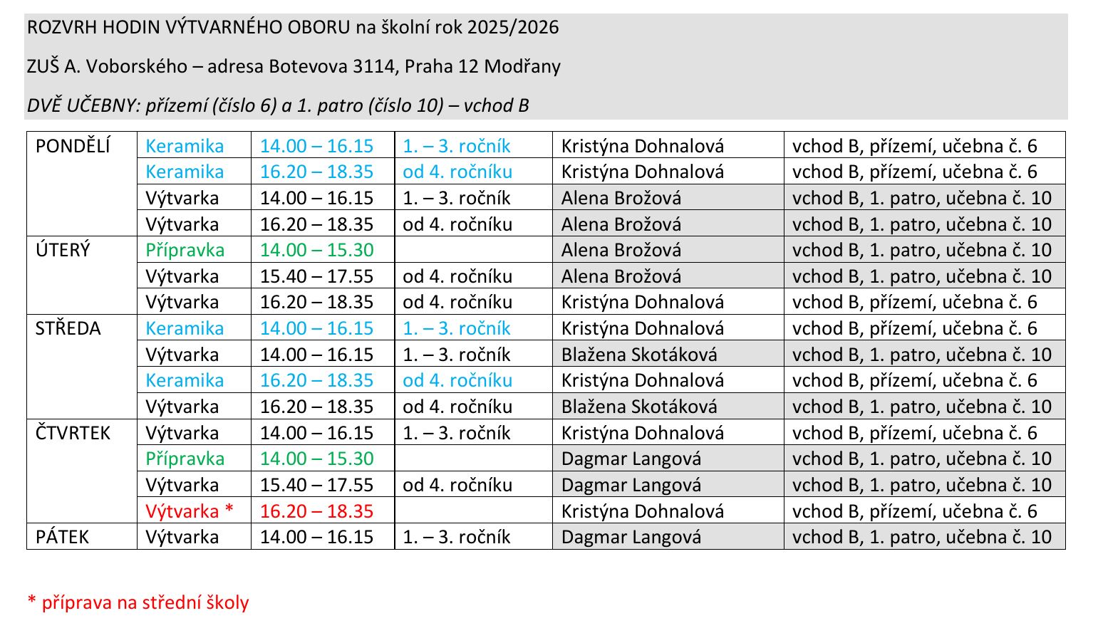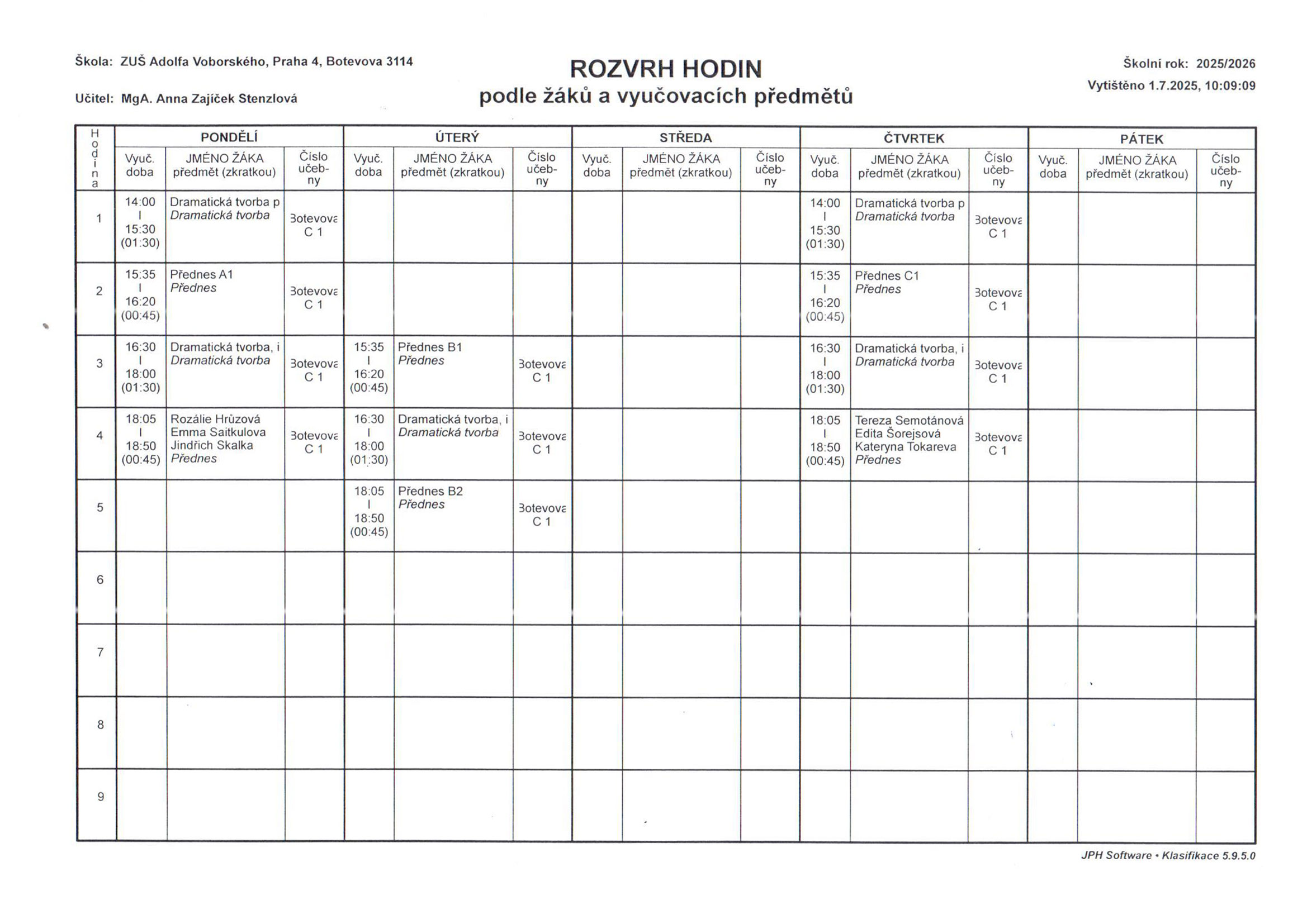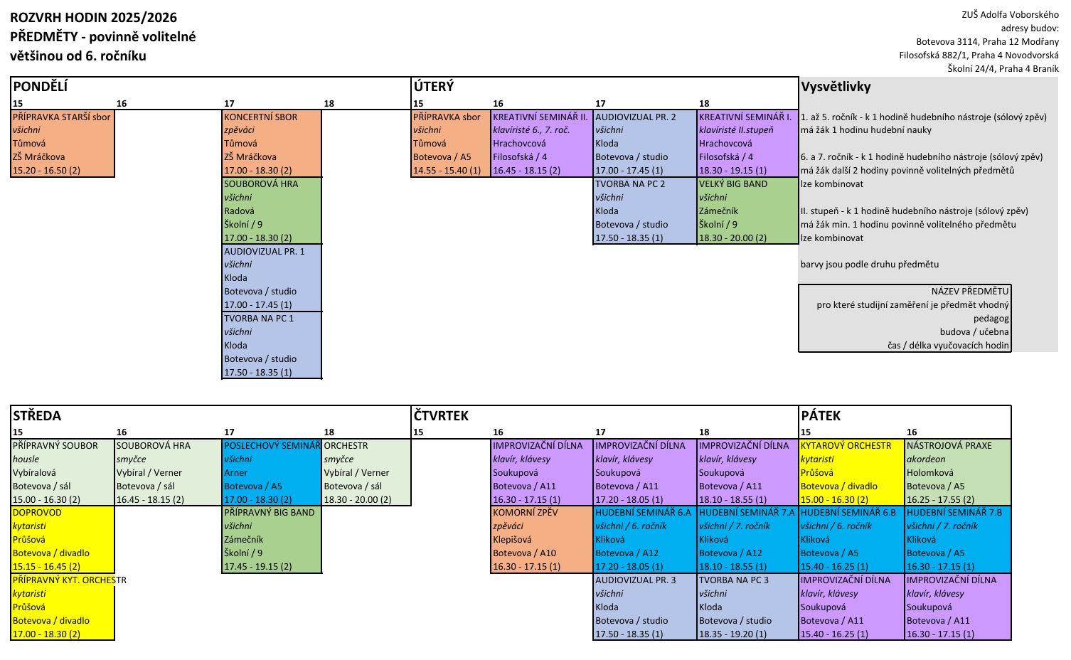 ROZVRHY HODIN JEDNOTLIVÝCH OBORŮ